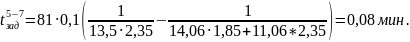 Рассчитываем время движения на участках с 5 по 7 по (5.2).