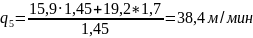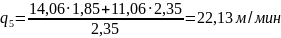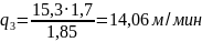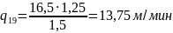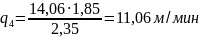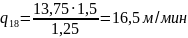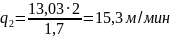 v1 = 54,31 м/мин; q1 = 13,03 м/мин
