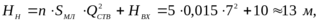 - напор на конце магистральной рукавной линии (принимается в зависимости от способа перекачки), м.в.ст., но не менее 10 м.в.ст.