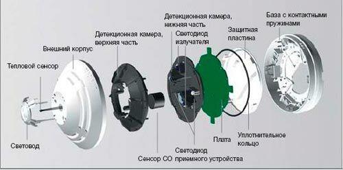 Рисунок 2.9 Строение пожарного дымового оптического извещателя, используемого в ОП «Энергосбыт» ПАО «Сахалинэнерго»