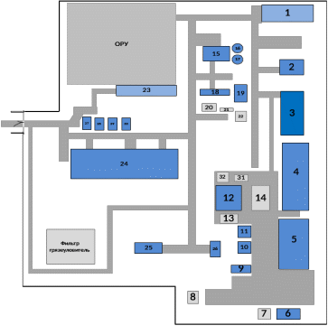 1 - основная насосная; 2 - площадку регуляторов давления;