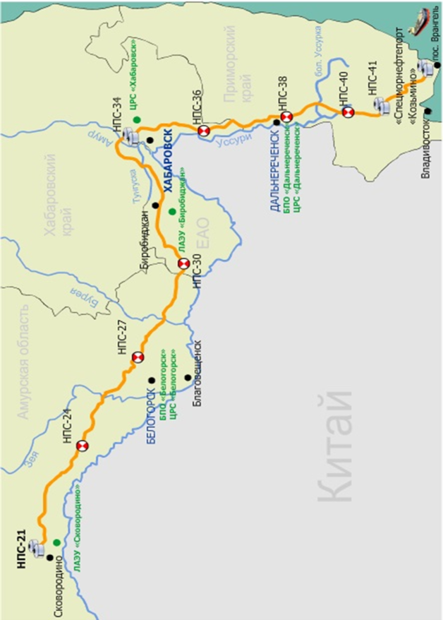 Схема трубопроводов ООО «Транснефть – Дальний Восток»