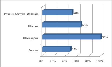 Рисунок 1.3 – Уровень электрификации железных дорог в мире, %