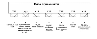 Для подключения СП, контрольно-путевых реле, цепей сброса ложной занятости, информационных систем и устройств электропитания на задней панели кассеты приемников расположены разъемы X12-X19. Назначение приведено на (рисунке 2.3).