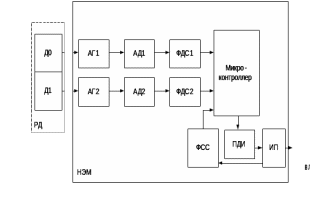 Основным элементом НЭМ является микроконтроллер, который предназначен для обработки информации, считываемой с ФДС датчиков, температурной автоподстройки сигналов с датчиков, определение направления подвижной единицы и формирования сигнала, подлежащего передаче в линию.