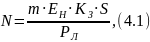 где m – коэффициент, учитывающий световую отдачу источника света, коэффициент полезного действия прожекторов и коэффициент использования светового потока: для ламп типа ДРЛ и ГЛ – 0,12…0,16;