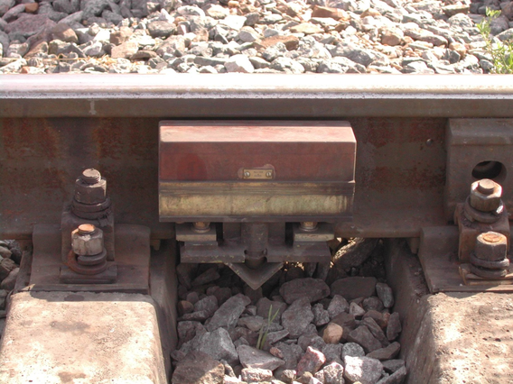 ИД состоит из двух частей: фактическипервичного датчика, состоящего из трех катушек индуктивности, помещенных в один корпус, который прикреплен к рельсуи преобразователя сигналов (ПС), помещаемогов напольном ящике вблизи пути рисунок 2.7.