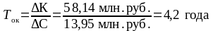 Срок окупаемости дополнительных капитальных вложений рассчитывается по следующей формуле: