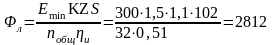 Расчетный (потребный) световой поток одной лампы