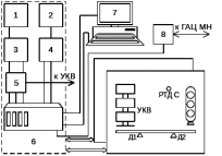 Вся поступающая информация от напольных устройств передается в терминальные платы контроллера (1-4) и по согласующему стыку (5) подается в КВГ (6). КВГ представлен в виде промышленного компьютера, оборудованный монитором и клавиатурой (7).