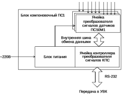 Преобразователь сигналов состоит из ячеек преобразования сигналов датчиков (18 штук), блока преобразователей ПС1, ячейки контроллера преобразователя сигналов КПС.