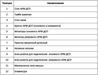 Для размещения оборудования используются эргономичная мебель. Количество мониторов, видео-плат и наличие дополнительных интерфейсных плат определяется исходя из задач, возлагаемых на каждое рабочее место. Перечень аппаратуры рабочего места дежурного по станции приведен в таблице 2.1.