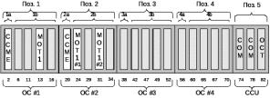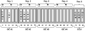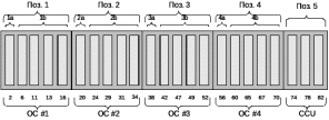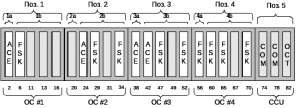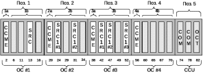 На позиции 1 установлен ОК с одной платой SRC, на поз.2 – ОК с двумя платами SRC, на поз.3 – ОК с тремя платами SRC, на поз.4 – ОК состоящий только из платы ССМ-Е.
