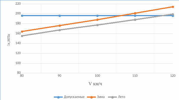 График напряжения в кромках подошвы рельса показан на рисунке 2.2