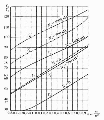 Рамная сила Yр определяется по рисунку 2.9 в зависимости от величины непогашенного ускорения анп.