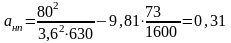Для определения расчетного значения отношения сил следует рассчитать непогашенное ускорение, возникающего в кривой при проходе вагона. Величина непогашенного ускорения при движении в кривой равна