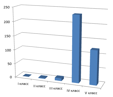 На представленной диаграмме видно (рисунок 2.1), что отходы четвертого класса опасности оказались самыми многочисленными. Их количество составляет 233, 683 тонны в год. Несмотря на то, что степень воздействия на окружающую природную среду оценивается как низкая, присутствует нарушение экологической системы, с периодом ее восстановления более трех лет.