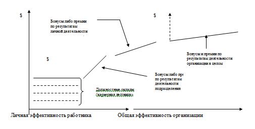 На подавляющем большинстве российских предприятий система мотивации неотделима от системы начисления фонда оплаты труда, один из лучших вариантов которой может быть графически отражен следующим образом (рисунок 8).