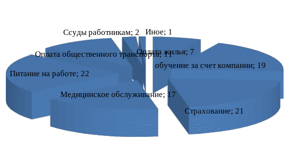 | Экономические (косвенные) | Льготное питание. Доплата за стаж. Премии. Оплата детских учреждений. Оплата строящегося жилья. Оплата юридических услуг. Финансирование программ физического оздоровления. | Дополнительные выплаты. Групповые премии |