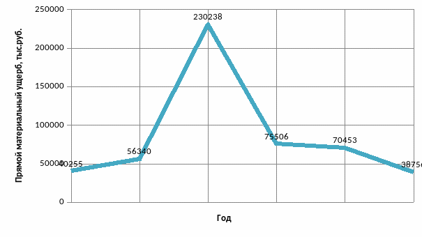 Рисунок 5.2 Динамика прямого материального ущерба за 2011-2016 г.г.