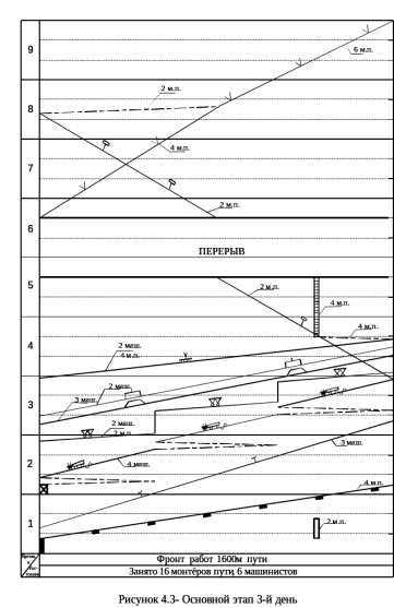 Таблица 4.1. Ведомость затрат труда по техническим нормам (фронт работ 1600м)
