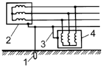 1 – инвентарный заземлитель; 2 – корпус электростанции; 3 – заземляющая жила питающего кабеля инструмента; 4 – корпус электроинструмента