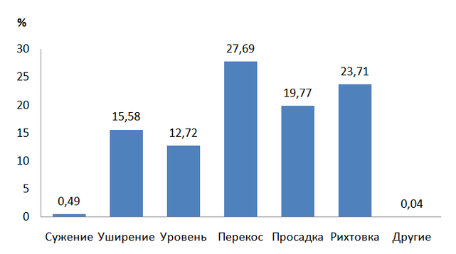 | Сужение | Уширение | Уровень | Перекос | Просадка | Рихтовка | Другие | ||||||