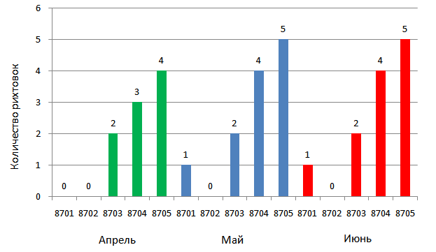 | Апрель | 9 | 1 | 8721 | 88 | ПржР+П 18/19; 13/10 |
