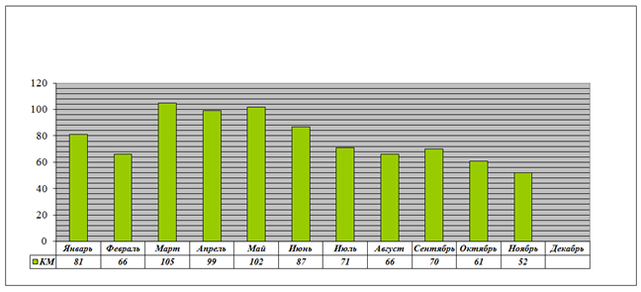Рисунок 3.5 Количество километров с оценкой "Отлично" за 2016 год.
