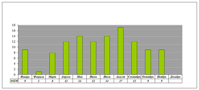 Рисунок 3.6 Количество километров с оценкой "Хорошо"за 2016 год.