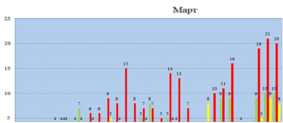 | март | отл 16 | отл 10 | отл 24 | отл 14 | хор 27 | хор 74 | отл 15 |