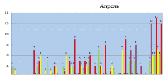 | апрель | отл 21 | отл 15 | хор 28 | хор 34 | отл 11 | хор 57 | отл 13 |