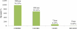 Количество и процентное соотношение оценки километров за 2016 год, представлено на рисунке 3.5.