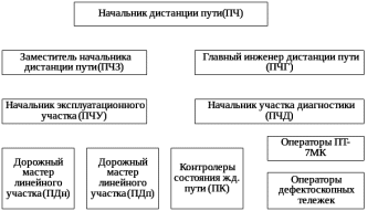 ПК находятся в подчинении ПЧУ или начальника участка диагностики (ПЧД) по согласованию с начальником дирекции инфраструктуры. Для обеспечения ведения отчетной и учетной документации, ведения электронного документооборота, выполнения работ по маркировке путевых обустройств в соответствие с требованиями нормативных документов на эксплуатационном участке вводятся техники в соответствии с Типовым штатным расписанием дистанций пути.