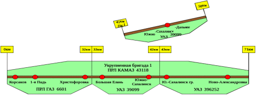 Рис.4.5. Организация доставки бригад к месту работ по участку Корсаков – Ново-Александровка