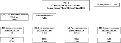 Организационная структура 2-го участка Сокол – Арсентьевка, Сокол – Быков представлена на рисунке 4.4.