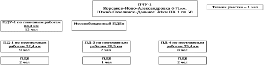 Организационная структура 1-го участка Корсаков – Ново-Александровка, Южно-Сахалинск – Дальнее представлена на рисунке 4.3.