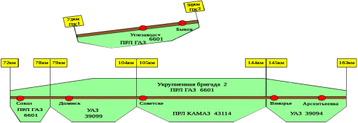 Рис.4.6. Организация доставки бригад к месту работ по участку по участку Сокол – Арсентьевка
