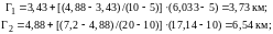 где Г∑ – общая глубина распространения облака, заражённого воздуха, км; Г – большее из значений Г1 и Г2, км; Г" – меньшее из значений Г1 и Г2 , км;