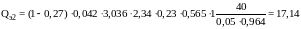 где к1 – коэффициент, зависящий от условий хранения сильнодействующего ядовитого вещества (0,27) (прил. 1 табл. 1) [14]; к3 – коэффициент, равный отношению поражающей токсодозы хлора к пороговой токсодозе другого ядовитого вещества (3,036) (прил. 1 табл. 1) [14]; к5 – коэффициент, учитывающий степень вертикальной устойчивости воздуха и равный для изотермии – 0,23; к'7
