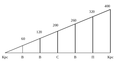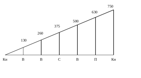 Рисунок 2.5 Ремонтная схема с равномерной расстановкой промежуточных ремонтов. Класс пути 1Б3, 2Б5, 2В5. Звеньевой путь на деревянных шпалах км: 376, 380, 405-411, 423-424, 426-429.