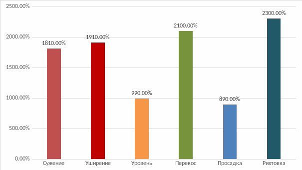 | Сужение | Уширение | Уровень | Перекос | Просадка | Рихтовка | Итого | ||||||||
