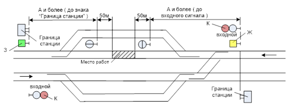 Рисунок 6.1 Ограждение работ на станции требующих остановки поездов