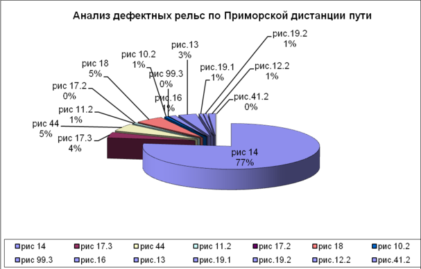 Диаграмма анализа дефектных рельс на дистанции приведена на рис.1.3.