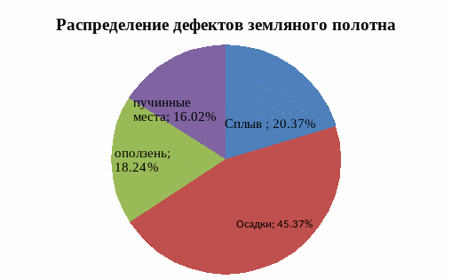 Диаграмма распределения дефектов земляного полотна приведена на рис. 1.5.