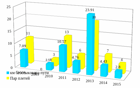 | км бесстыкового пути | 7,091 | 0 | 2,575 | 10,57 | 4,764 | 23,907 | 4,431 | 2,799 |