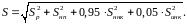 Среднее квадратическое отклонение динамической вертикальной нагрузки колеса на рельс S определяется по формуле композиции законов распределения его составляющих: