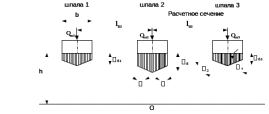 где σh1 и σh3 - напряжения от воздействия соответственно 1-ой и 3-ей шпал, лежащих по обе стороны от расчетной шпалы; σh2 - напряжения от воздействия 2-ой шпалы (расчетной) в сечении пути под расчетным колесом.