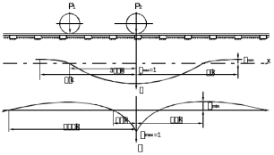 При расчете рельса как балки на сплошном упругом основании система сосредоточенных колесных нагрузок (рисунок 1.1) заменяется эквивалентными одиночными нагрузками, соответственно при определении изгибающих моментов и напряжений в рельсах с помощью функции