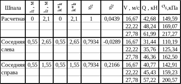 Таблица 1.11 –– Расчет напряжений в элементах верхнего строения пути
